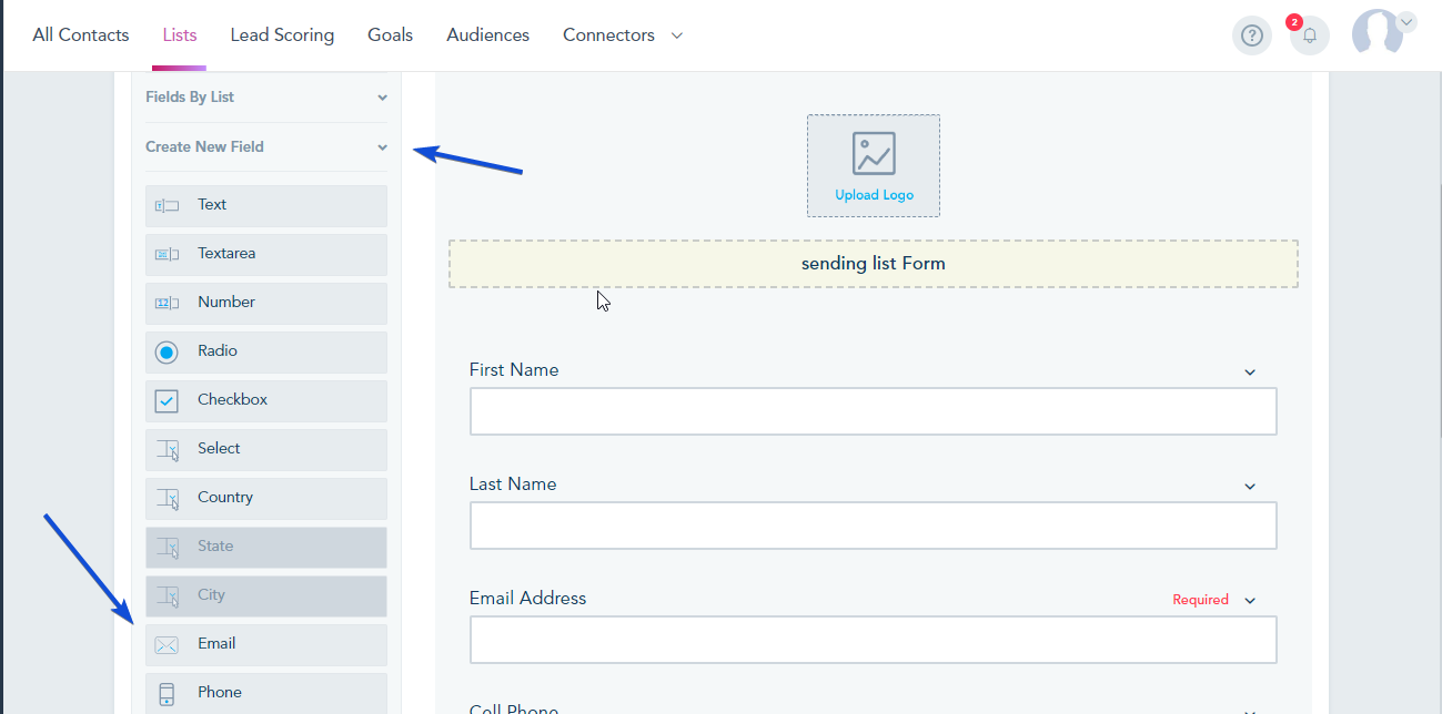 - Add a custom form field with Type: Email Address from the new field section. This field will specify the From Email for each contact.