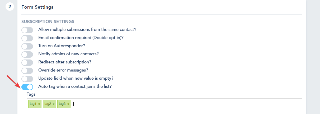 Once you've enabled the feature, you'll see a text field where you can input tags.