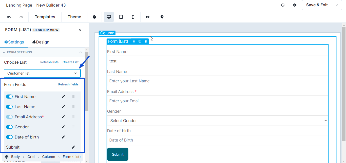Once you are done editing your fields in the Form builder, click on Refresh fields to apply the changes on the landing page form.