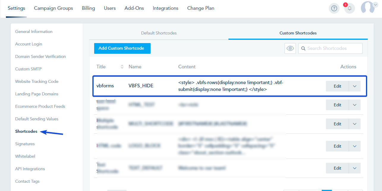 - Navigate to your Settings -> Shortcodes and select Custom Shortcodes.