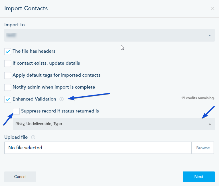 When mass importing your contacts, you have the option to validate your contacts' email addresses.