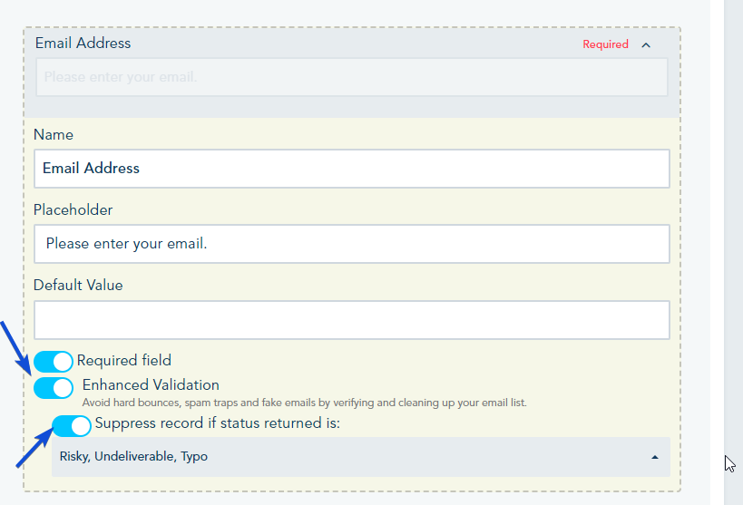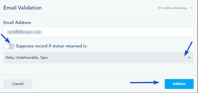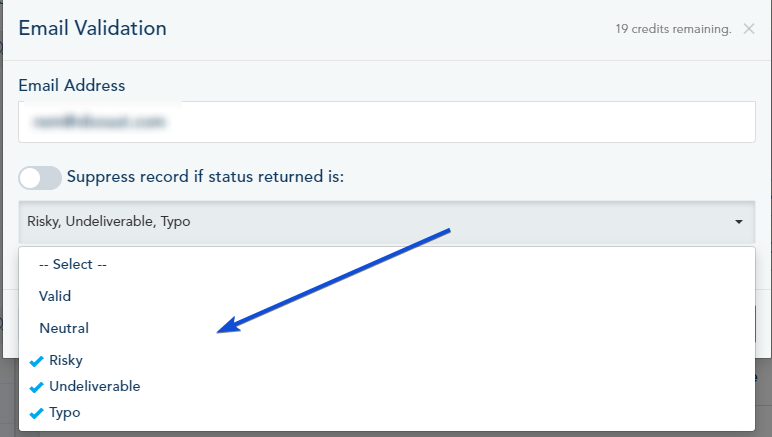 Also, you can choose Email Validation from drop-down menu inside the Lead profile.