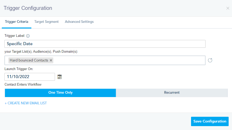 In the trigger configuration, choose the audience you want to add to the list and a date to launch the automation.