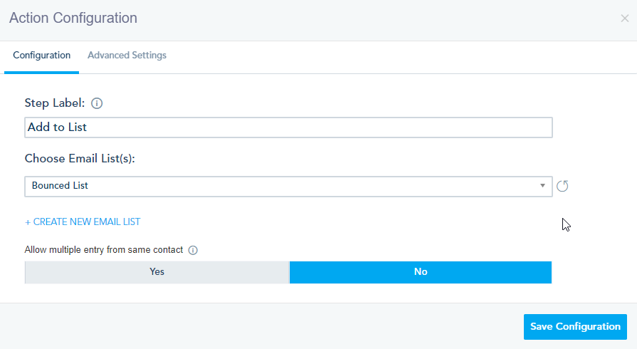 In the Action configuration, choose the list you want to add your audience to.