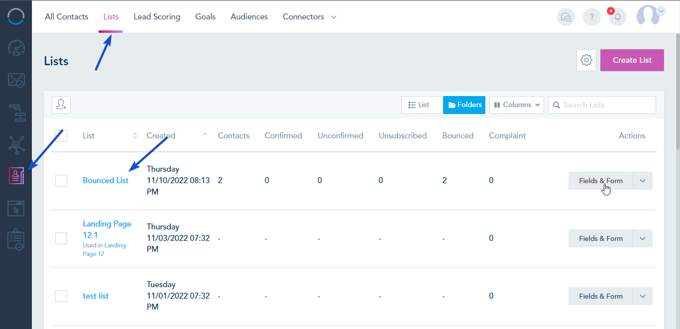 Add the Hard bounced audience to a List: