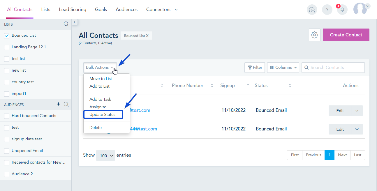 Bulk change the contacts' status to Active: