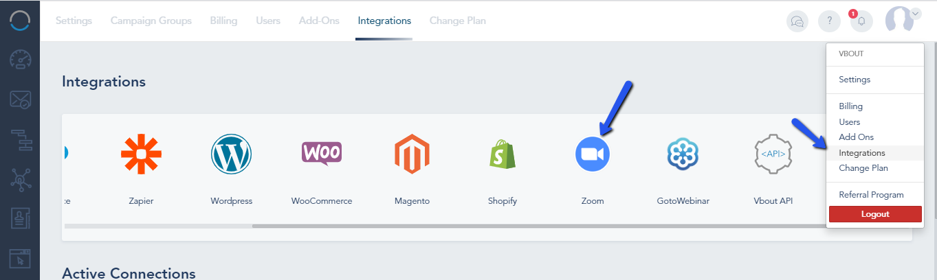 The platform offers a native Zoom integration where account owners can sync with VBOUT, webinar registrants along with their attendance activities and help turn event data into marketing data.
