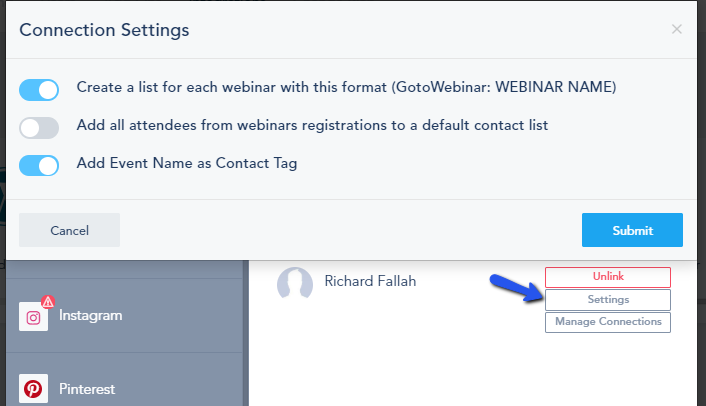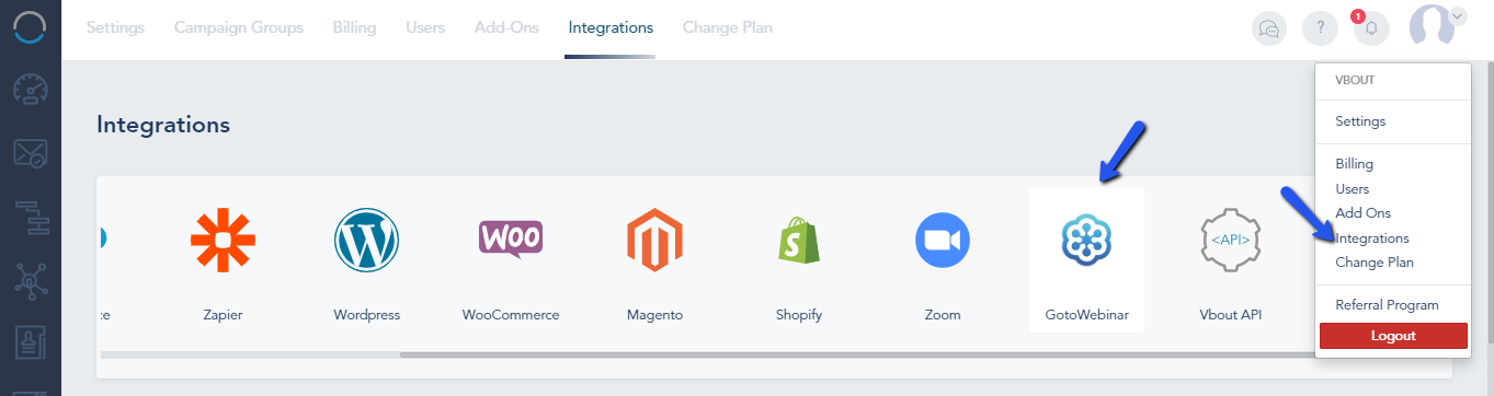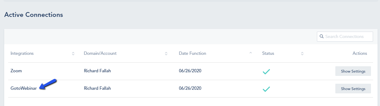 Once you successfully connect your GotoWebinar account, you will see it under the Integrations page:
