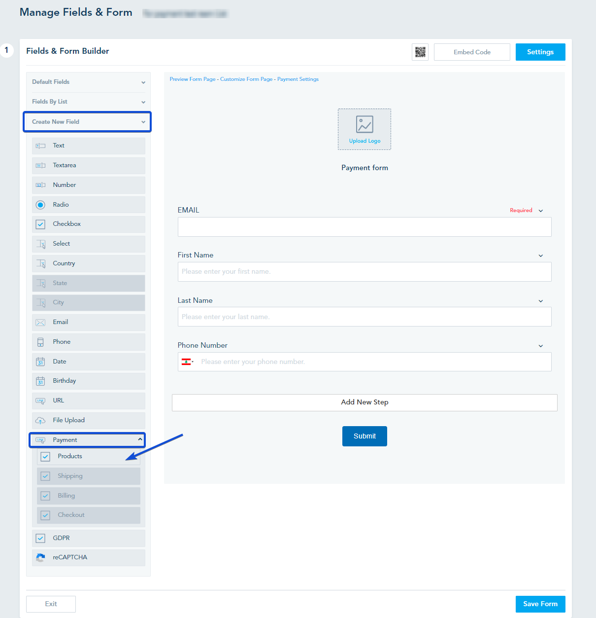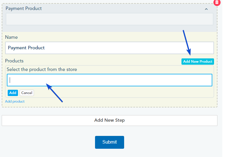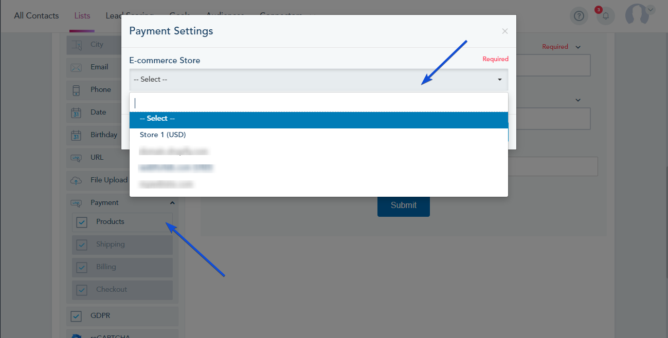 - After adding the "Payment Product" field, you will be prompted to select your e-commerce store.