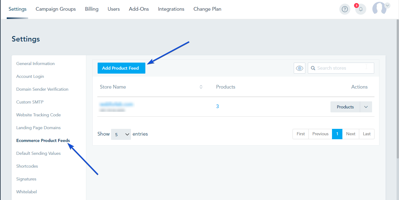 Navigate to the Settings -> E-commerce Product Feeds -> Add Product Feed